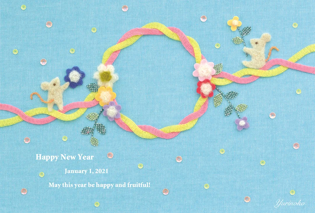 2匹のねずみが葉っぱや花の飾り付けをしている様子を作りました。